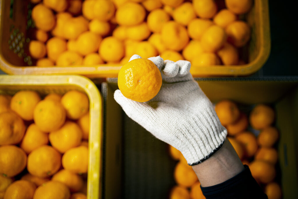 よけそ農園では、ネットショップで販売するみかんを選果機を使わずに、手選別で一つひとつ確認して選別しています。